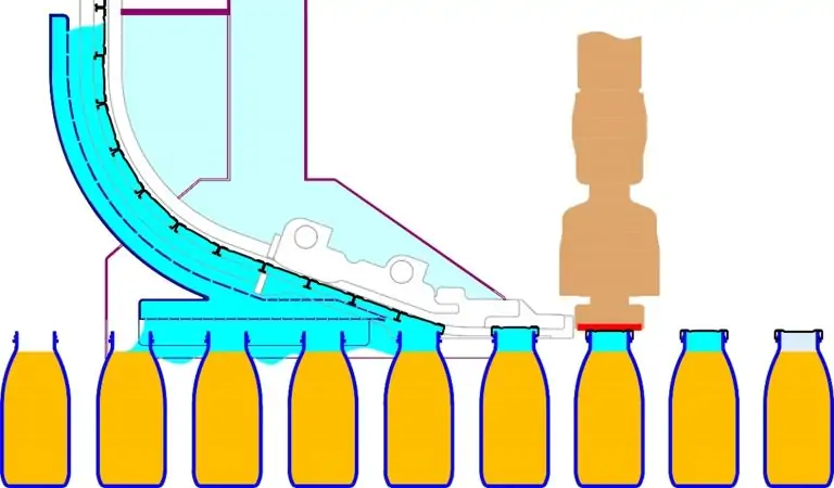 Naplnené fľaše sú priamo prepravované z hviezdicových kolies plniacich strojov do skrutkového dopravníka zatvárača. Skrutkový dopravník prepravuje fľaše cez uzatváraciu jednotku. Vzdialenosť medzi plnením a zatváraním je čo najkratšia, aby produkt nestihol vychladnúť pred uzavretím. Metóda prepravy fliaš skrutkovým dopravníkom zabezpečuje plynulý tok fliaš cez zatvárač bez náhlych pohybov, ktoré by mohli spôsobiť rozliatie kvapaliny.