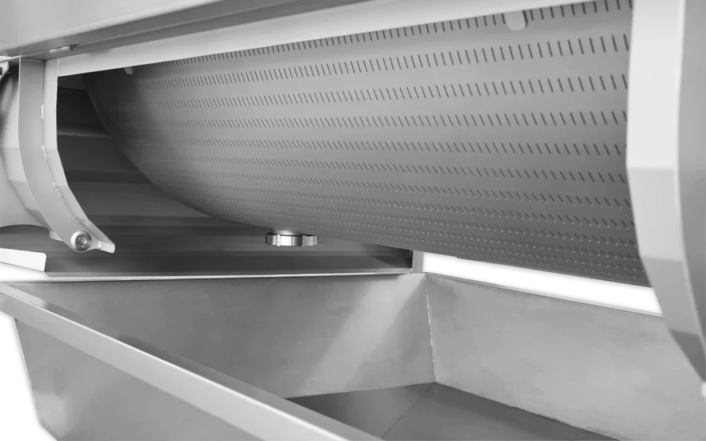 - Výklopné bočné panely umožňujú úplný prístup k rotujúcemu bubnu počas čistenia a vyprázdňovania