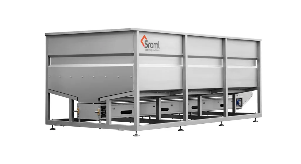 Násypky na hrozno SRAML GRS sú vyrobené výlučne z nehrdzavejúcej ocele a zhromažďujú úrodu na začiatku spracovateľskej linky. Vstavaný závitovkový (šnekový) podávač s mechanickým meničom na reguláciu rýchlosti, umožňuje rovnomerné dávkovanie hrozna na ďalšie spracovanie.