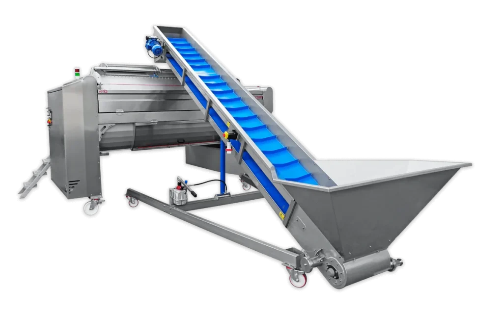 Pri prijímaní hrozna z debničiek, zásobníkov alebo návesov vybavených závitovkami (šnekmi) umožňujú dopravníkové pásy kontrolu kvality hrozna a šetrnú vertikálnu prepravu ovocia k určenému spracovateľskému stroju.