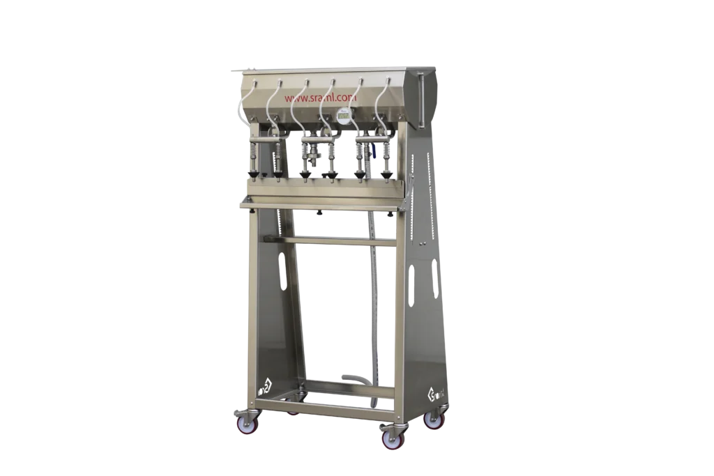 Dostupné vo voľne stojacej alebo stolovej verzii, manuálne fľašovače SRAML PS Eco a Standard, umožňujú nastavenie prietoku produktu prostredníctvom modulačného ventilu, čím sa zabezpečí konštantná kontrola prietoku. Pri gravitačných systémoch plnenia sa fľaša plní na prednastavenú úroveň jednoducho pádom produktu. Systém je navrhnutý na spracovanie produktov s teplotou od okolitých hodnôt až po 90 °C (horúce plnenie).